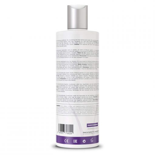 De Kapilab verzorgende conditioner is ontworpen voor mannen en vrouwen als een aanvullende behandeling om haaruitval te stoppen en het haar te verdikken. Het heeft voedingsstoffen die de gezondheid van het het haar versterken en verbeteren door kracht, glans en dikte te bieden, wat resulteert in meer dichtheid en gezonder haar.